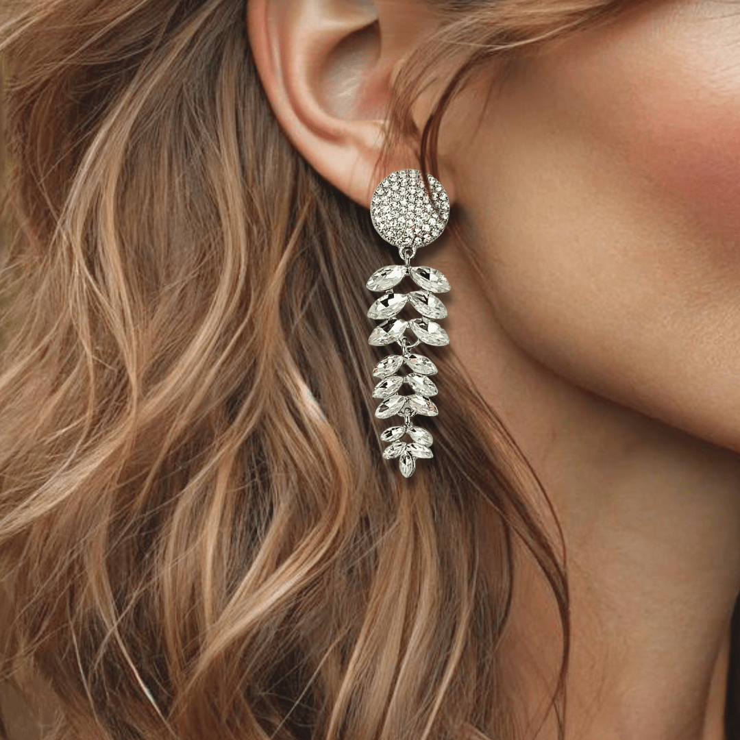 Crystal Long Glitters Earrings | Silver - Muze Earrings