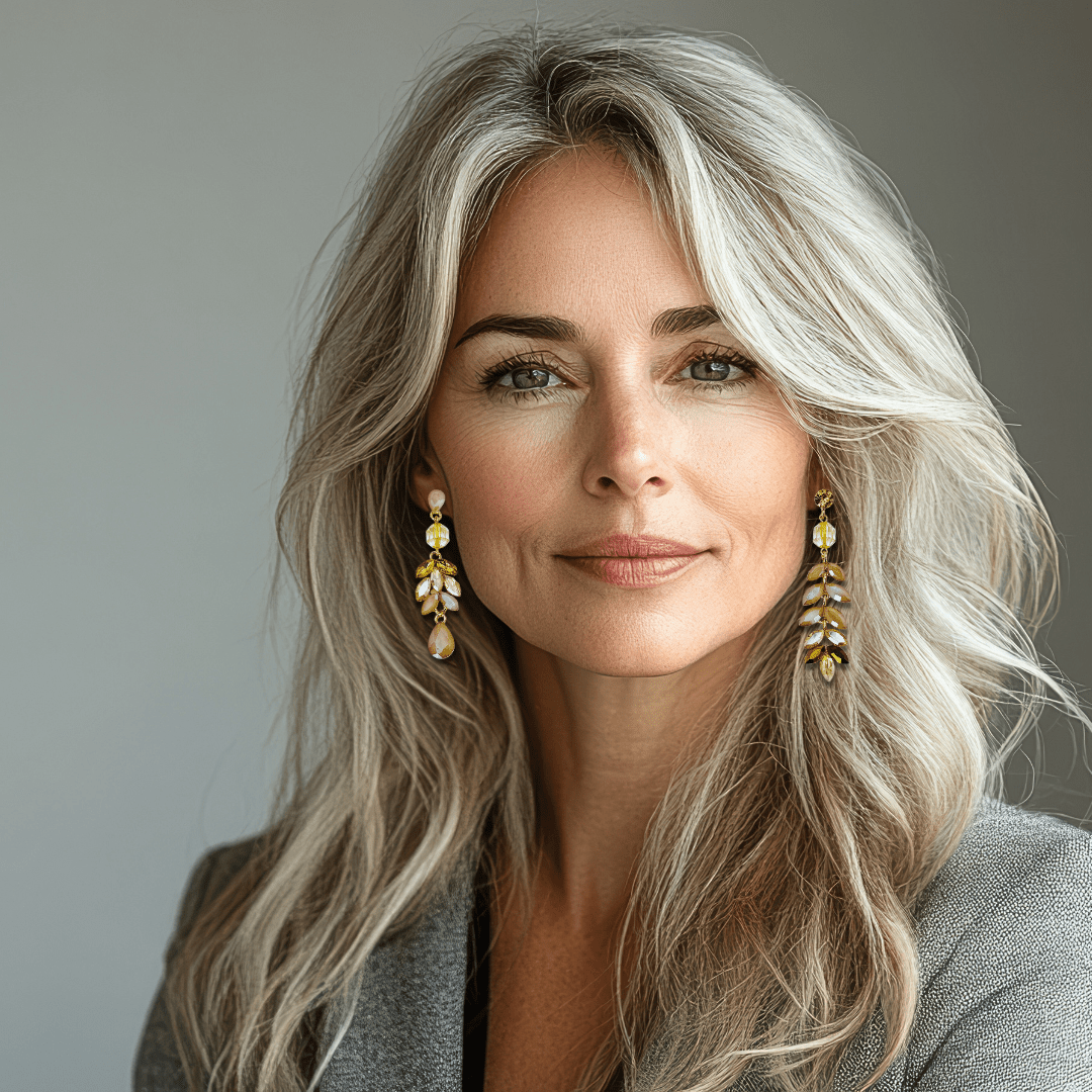 Asymmetric statement earrings combining Swarovski® crystals with citrine . The soft beige and yellow tones create a warm, refined look, while the Swarovski crystal adds a subtle yet luxurious sparkle.