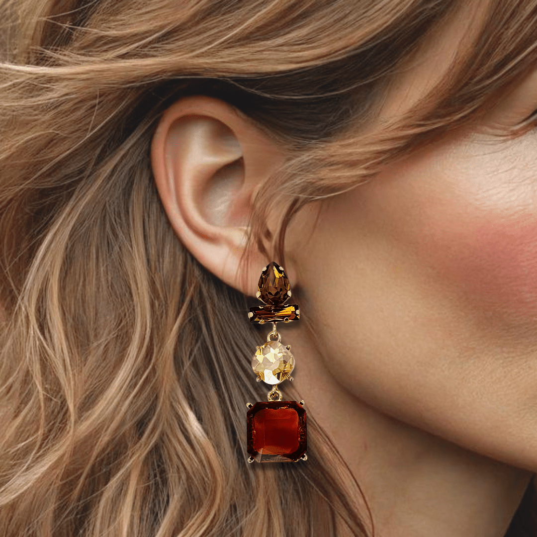 Cognac Crystal Glam II Earrings | Gold - Muze Earrings