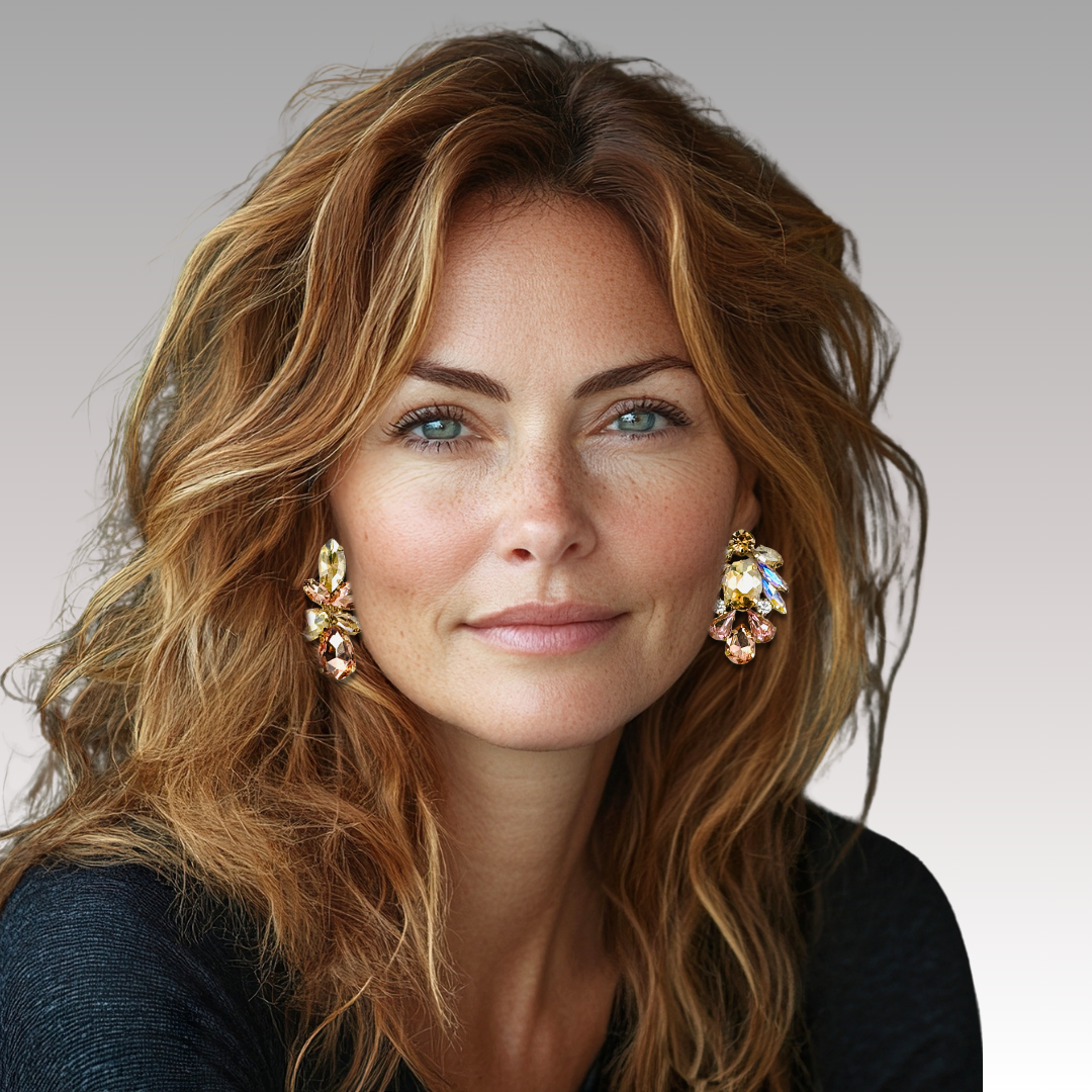 Asymmetrische clip-oorbellen met Swarovski® kristal in zachte champagne- en blush tinten, verrijkt met subtiele iriserende accenten. Een uitgesproken design dat speelt met vorm, licht en contrast, zonder concessies te doen aan comfort.