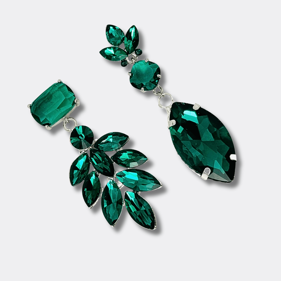 Deze asymmetrische statement oorbellen zijn een ode aan kleur en lef. Een rijke mix van groene Swarovski® kristal in diverse vormen die zorgen voor een sprankelend en gelaagd geheel.