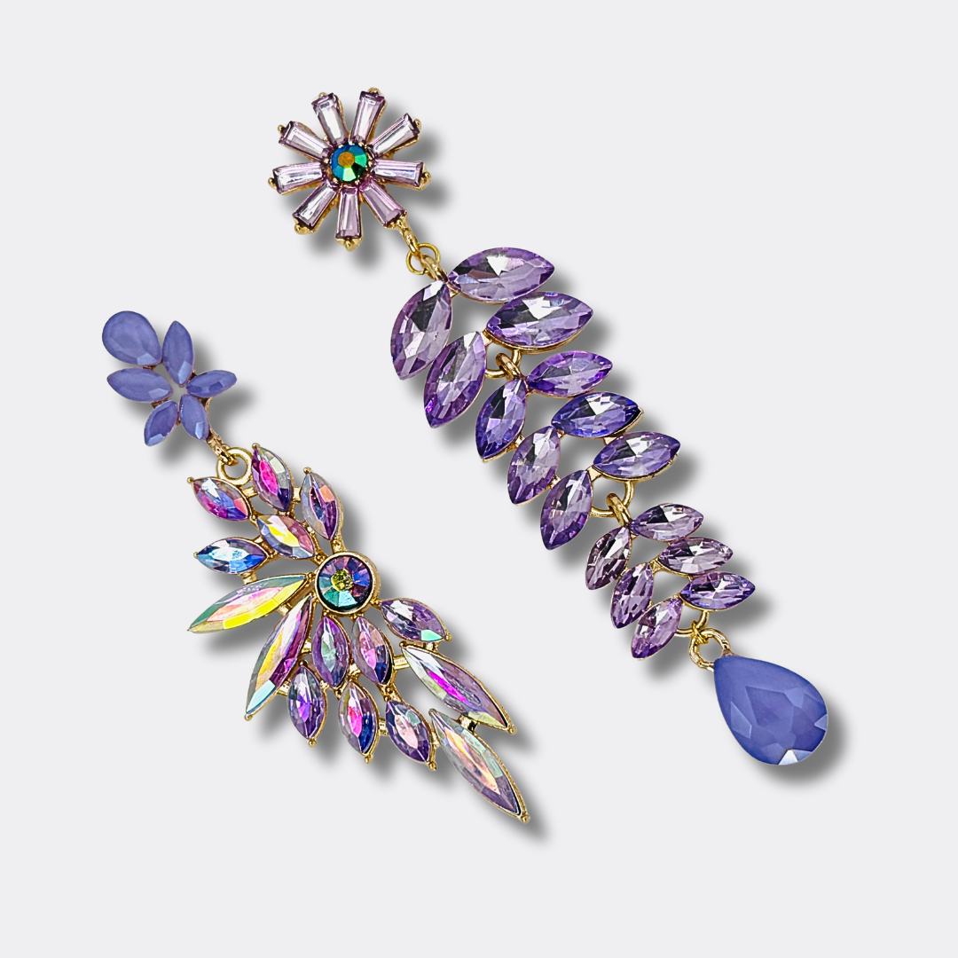 Lilac Crystal Glam Earrings | Gold