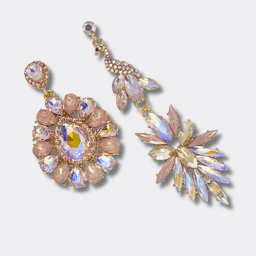 Deze asymmetrische statement oorbellen zijn een verfijnde explosie van licht, uitgevoerd in sprankelend Swarovski® kristal met een subtiele glans.
